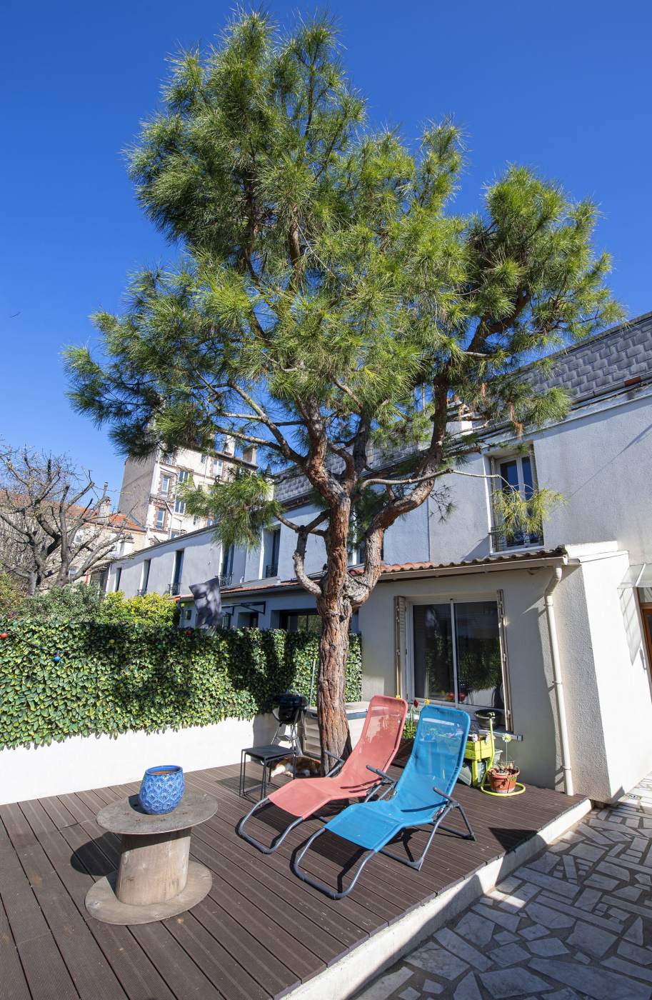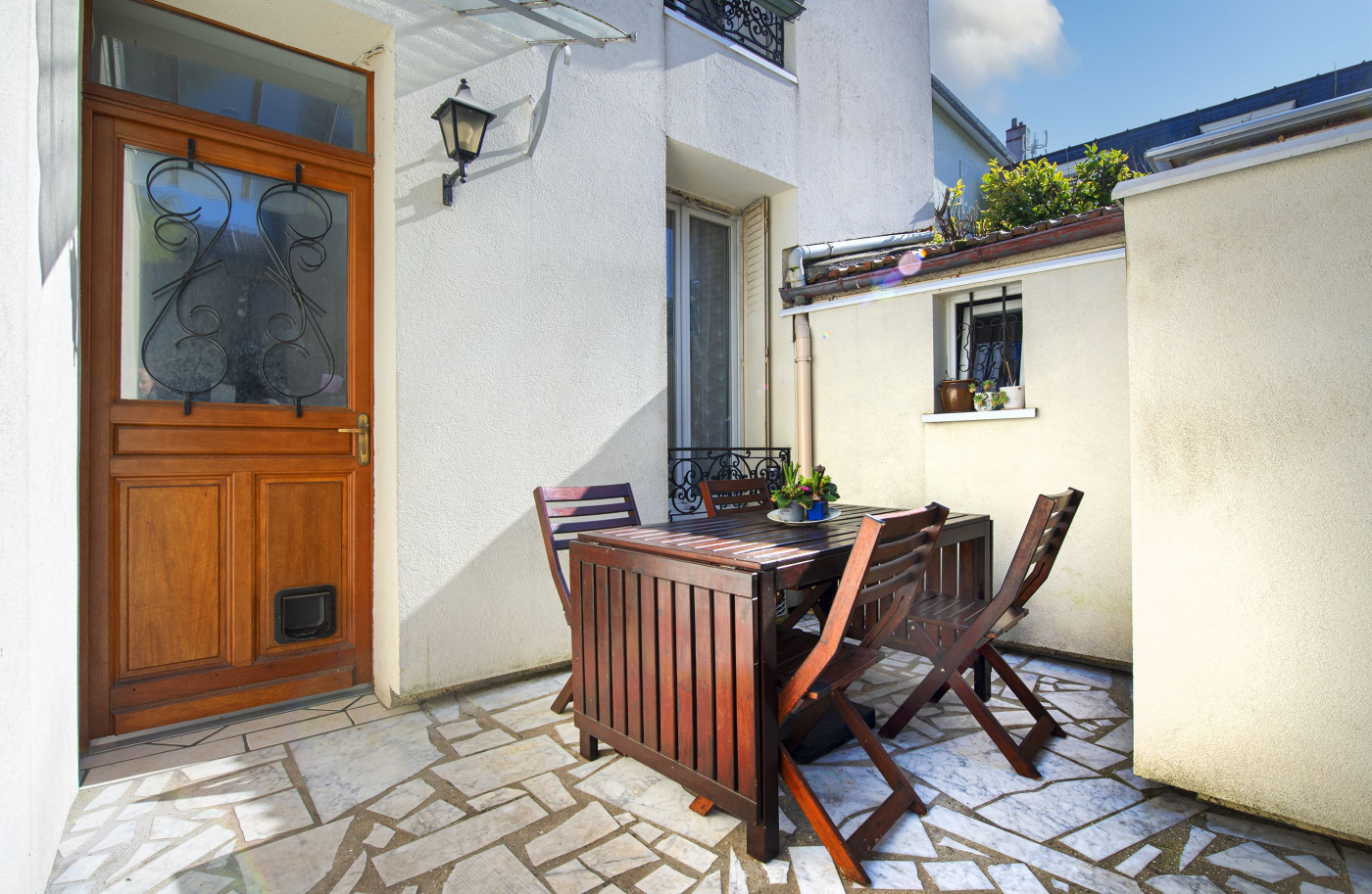 Le bien est au fond d'une petite allée privée, et bénéficie d'un agréable extérieur arboré d'environ 45m² avec une terrasse exposée sud ouest, au calme.